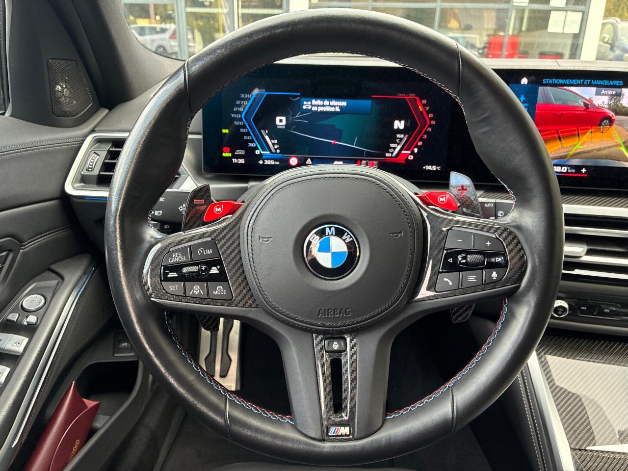 Accès Confort Dashcam BMW Dossier Complet - Informations Véhicule M3 Touring HistoVec à disposition BMW Live Cockpit Navigation Pro avec affichage tête haute... Ceintures de sécurité noires avec liseré... Drive Assist Pro Freins composites M rouges Jantes forgées 19/20" style 826M à rayons... Pack extérieur M Carbon Pack Innovation Park Assist Plus Peinture Saphirschwarz métallisée Projecteurs Laser BMW Système Hi-Fi Harman Kardon Vitrage calorifuge Volant chauffant