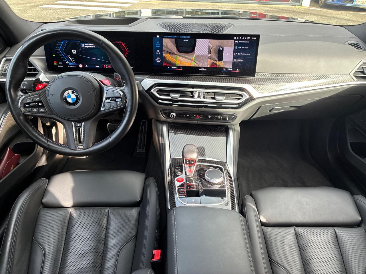 2 doubles sorties d'échappement rondes, à gauche et à droite8 touches de raccourcis programmablesOrigine : Import Allemange via BMW Select (sous garantie constructeur jusqu'en février 2029)ABS, y compris assistant de freinageAccoudoir central avant coulissantAirbags conducteur et passagerAirbags de tête avant et arrière avec voile de protection contre les débris de verreAirbags latéraux avantAlarme antivolAnti-démarrage électronique EWS IVAppuis-tête arrière rabattablesAutoradio BMW Professional CD, prise AUX-IN, compatibilité MP3, double Tuner RDS FMBaguettes de seuil de portes avec inscription "BMW M"Banquette arrière rabattable 40/20/40BMW Live Cockpit Navigation PlusBMW Tracking SystemBouton de démarrage Start/Stop rouge sans manipuler la cléCalandre avec barreaux horizontaux noirs et logo “M3 Competition”Chargeur portable sans fil par inductionCiel de pavillon M AnthraciteClés radiocommandées à mémorisation automatique des réglages "Personal Profile"Climatisation automatique 3 zonesColonne de direction réglableCommande électrique du volet de coffreContrôle Dynamique de la Stabilité DSC+ avec fonctionnalités étendues de démarrage en côteContrôle Dynamique de Traction DTCController iDrive Touch avec touches d'accès directDésactivation de l'airbag du passager avantDésignation du modèleDétecteur de pluie et allumage automatique des projecteursDétection de l'occupation du siège passager avantDéverrouillage électrique du coffre via le volet de coffre ou la clé radiocommandéeDifférentiel Actif M à commande électronique avec blocage du couple variant de 0 à 100%Direction Servotronic spécifique M à assistance variable en fonction de la vitesseEclairage d'accompagnement (extinction retardée des projecteurs)Eclairage d'accueil extérieur et fonction "Coming HomeEclairage d’ambianceEclairage dans le coffreEcrous antivolEléments extérieurs couleur carrosserieEtriers de frein bleusFeux antibrouillard arrièreFeux de stop dynamiques clignotants avec technologie LEDFilet de séparation du coffre à bagagesFixations Isofix aux places latérales arrièreFrein de parking électroniqueInserts décoratifs brillants "Schwarz"Jantes forgées 19/20" style 826M à rayons doubles Schwarz pneus mixtesKit EclairageKit rangementLève-vitres avant électriques avec commande par impulsion et protection anti-coincementM Drive ProM Dynamic ModeMesure individuelle de pression des pneumatiquesNotice d'utilisation de la voiture intégrée et carnet d'entretien électronique avec BMW Service HistoryOrdinateur de bord, Check-Control et indicateur de température extérieurePack Advanced Full LEDPack Connected ProPare-chocs arrière au design spécifique avec diffuseurPare-chocs avant au design spécifique avec 2 grandes prises d'airPare-soleil avec miroirs de courtoisie éclairésPorte-gobelets (2) sur la console centrale avec couvercle occultablePrise 12V dans la console centraleProjecteurs directionnels et de feux de route permanents anti-éblouissementRadars de stationnement avant et arrière PDCRails de toit Shadow Line M brillantRégulateur de vitesse avec fonction freinage et limiteur de vitesseRepose-pied conducteur siglé "M"Rétroviseur intérieur électrochromeRétroviseurs extérieurs avec répétiteurs latéraux de clignotantRétroviseurs extérieurs couleur carrosserieRétroviseurs extérieurs électriques, asphériques, dégivrantsRétroviseurs extérieurs électrochrome côté conducteurRétroviseurs extérieurs rabattables électriquementRétroviseurs extérieurs spécifiques M aérodynamiquement optimisésSellerie Cuir Merino SchwarzShadow Line M brillant étenduSièges avant chauffantsSièges avant électriques à mémoires conducteur avec soutien lombaireSièges MSuspension SelectDrive MSystème de freinage hautes performances avec disques de freins perforés et étriers fixesSystème Hi-Fi, 10 haut-parleurs, 205 WTapis de sol en veloursTechnologie M xDriveTeinte de carrosserie "Alpinweiss" unieToit noir laquéTrain roulant de conception M avec liaison essieu/carrosserie raffermie et bras transversaux,ressort et amortisseurs spécifiques MTriangle de présignalisation avec kit de premiers secoursTuner DABVerrouillage automatique des portes dès 15km/hVerrouillage centralisé des portes, du coffre et de la trappe à essenceVide-poches ergonomiques dans les portes avantVitres athermiquesVolant M gainé cuir avec touches multifonctions, deux touches M DriveVolet de coffre spécifique en SMC générant un appui aérodynamique supplémentaire