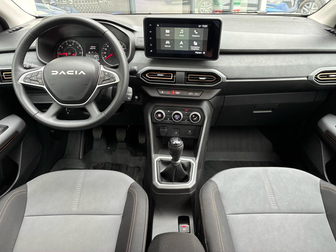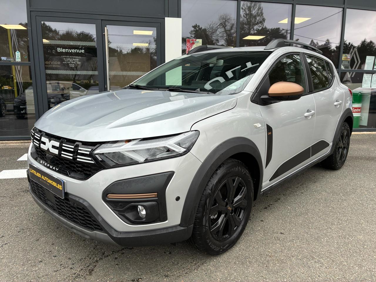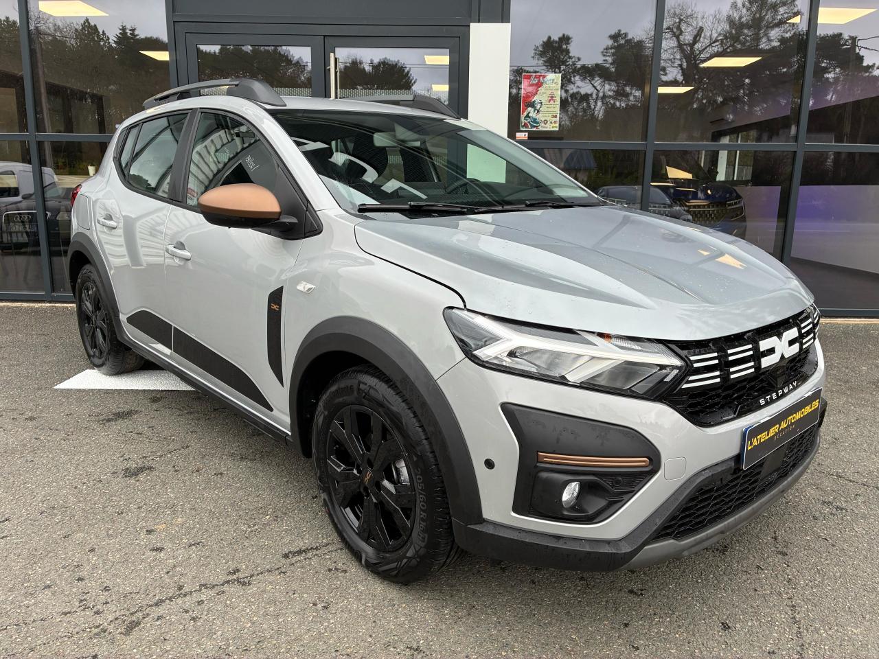 ABS avec aide au freinage d'urgenceAide au démarrage en côteAide au stationnement avant/arrièreAirbags conducteur et passagerAirbags latéraux épaules et rideauxAppel d'urgence - EcallBanquette arrière rabattable et fractionnable 1/3-2/3Barres de toit longitudinales modulaires Gris MégalitheBoucliers avant et arrière ton carrosserieCalandre avec inscription « Stepway » blancCalandre BlancheCentre des aérateurs Cuivré et curseurs blancsClimatisation manuelleCondamnation automatique des portes en roulantCondamnation des portes électrique avec télécommande à radiofréquencesContours des aérateurs Gris fuméContrôle de pression des pneus ( TPMS )Direction assistée électriqueEnjoliveurs Flexwheel 16” SariaEPS : Contröle électronique de stabilitéEssuie-glace à déclenchement automatiqueFeux de jour automatiques à LEDFreinage actif d’urgence (AEBS Interurbain)Kit de gonflageLève-vitre impulsionnel conducteur (avec fonction antipincement)Lève-vitres arrière électriquesLève-vitres avant électriques conducteur et passagerLettrage Dacia arrière blancLimiteur de vitesse avec avertisseur sonoreMedia Display 8” : Radio DAB + smartphone replication via câble USB, connexion Bluetooth, 4 haut-parleurs, écran tactile 8” + support téléphone amovibleOrdinateur de bord : distance parcourue, vitesse moyenne, autonomie, consommation moyennePanneaux de porte Noir TitanePeinture Blanc GlacierPlafonnier avantPoignées de portes couleur carrosseriePoignées de portes intérieures Gris AcierPrétensionneurs de ceintures de sécurité (places avant et latérales arrière)Prise 12V à l'avantPrise USB avantProgramme Eco-modeProjecteurs antibrouillardRégulateur de vitesseRétroviseurs extérieurs couleur carrosserieRétroviseurs extérieurs réglables électriquementRevêtement tissu sur la planche de bord et accoudoirs portes avantSellerie spécifique Stepway à insertions et surpiqûres grisesSignature lumineuse à LEDSkis avant / arrière Gris MégalitheStickers protection latérale noirsSystème de fixation Isofix pour siège enfant aux places latérales arrièreSystème Stop & StartVolant réglable en hauteurVolant réglable en profondeurVolant Softfeel