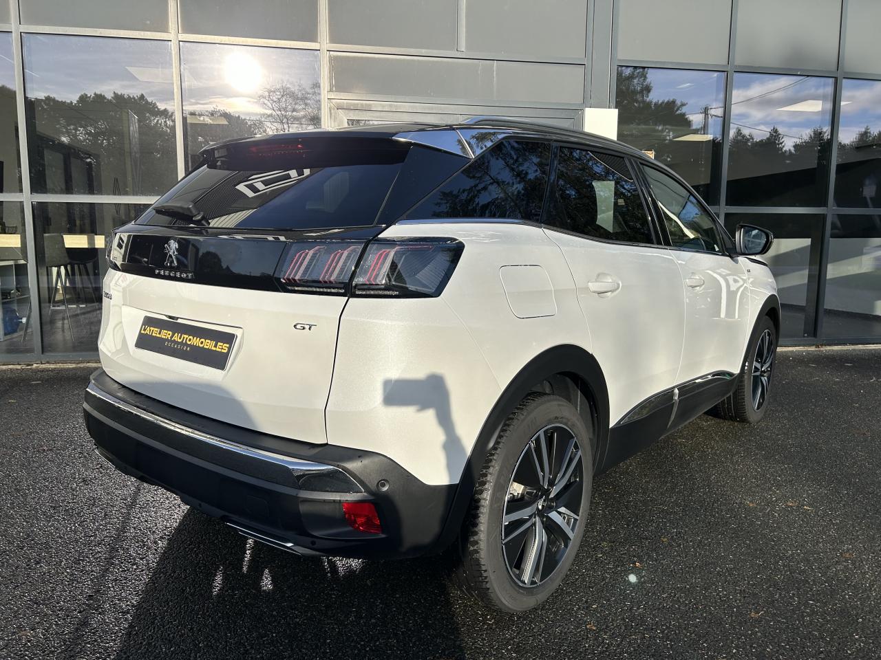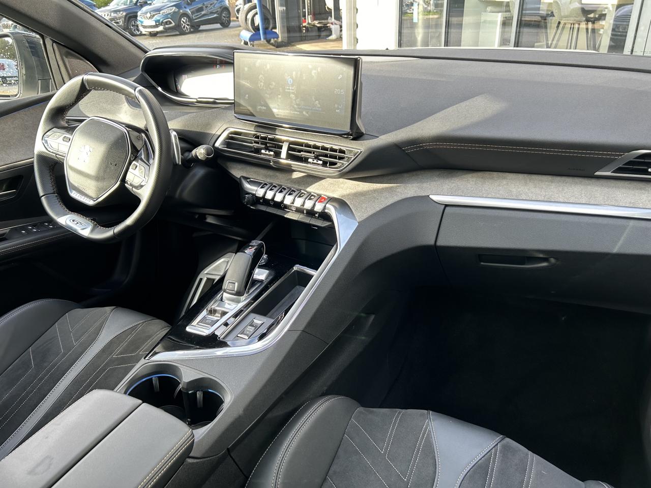 ABS avec répartiteur électronique de freinage (REF) et aide au freinage d'urgence (AFU)Banquette rabattable 1/3 - 2/3 (modularité 'Magic Flat' et commandes dans le coffre) avec accoudoir et trappe à skisBarres de toit longitudinales profilées en aluminiumCalandre GT avec design évolutif chroméEclairage intérieur à LED : plafonniers et rangementsEssuie-glace arrière avec déclenchement automatique en marche arrièreFonction 'Mirror Screen' (Apple Carplay / Android Auto)Hayon mains libres : volet de coffre motorisé avec accès mains libresNavigation 3D connectée avec reconnaissance vocale, écran tactile capacitif 10" HDPack City 2Peugeot i-Cockpit : combiné tête haute numérique haute qualité d'affichage, écran tactile capacitif 10" HD et volant compact multi-fonctionsPrise USB (dans la zone connectique)Prises 12V (x3 : zone connectique, arrière de console et coffre)Prises USB de charge (x2) au 2nd rangProjecteurs 'Peugeot Full LED Technology' avec correction automatique de site, fonction Eclairage Virage Statique,'Foggy Mode' et feux diurnes à LED prolongés dans les projecteursRétroviseurs extérieurs électriques et dégivrants, rabattables électriquement avec éclairage d'accueil à LEDSièges avant chauffantsSystème Hi-Fi Premium Focal - 10 haut-parleursToggle Switches' chromés (touches 'piano' d'activation des fonctions de l'écran tactile)Toit 'Black Diamond' (toit Noir Perla Nera)Volant cuir fleur perforé avec bagues chrome acier et badge GT