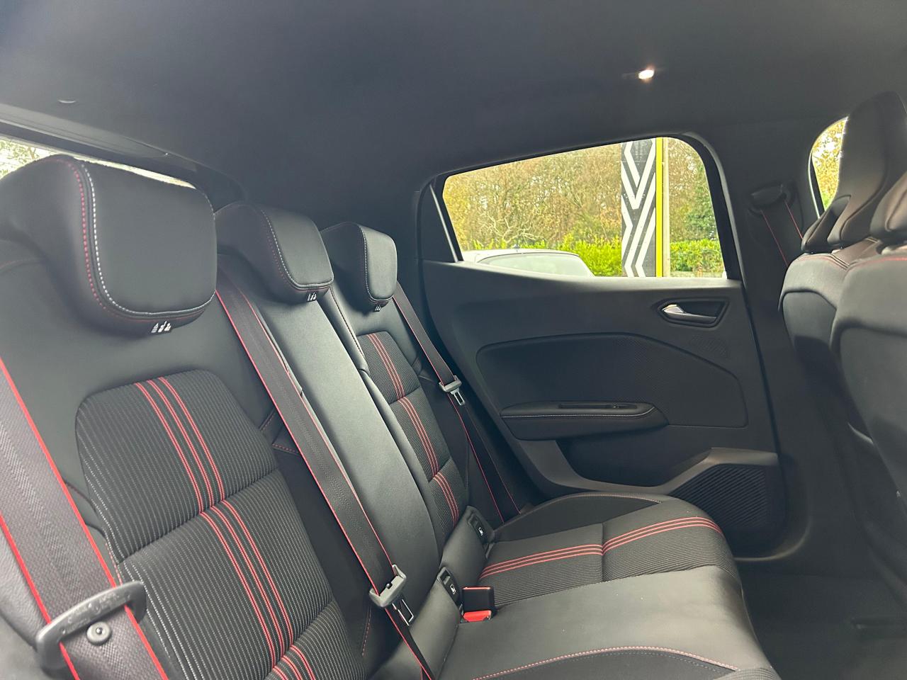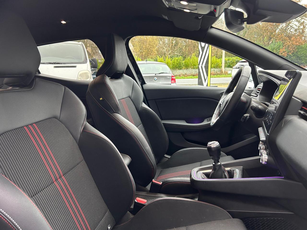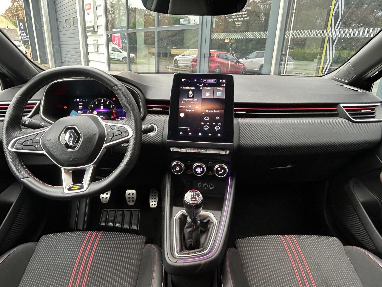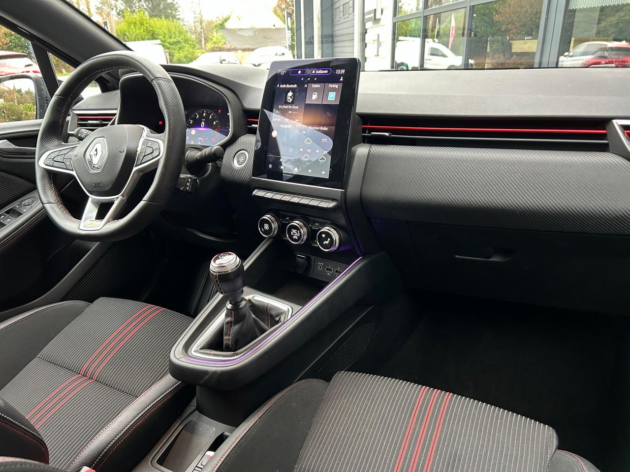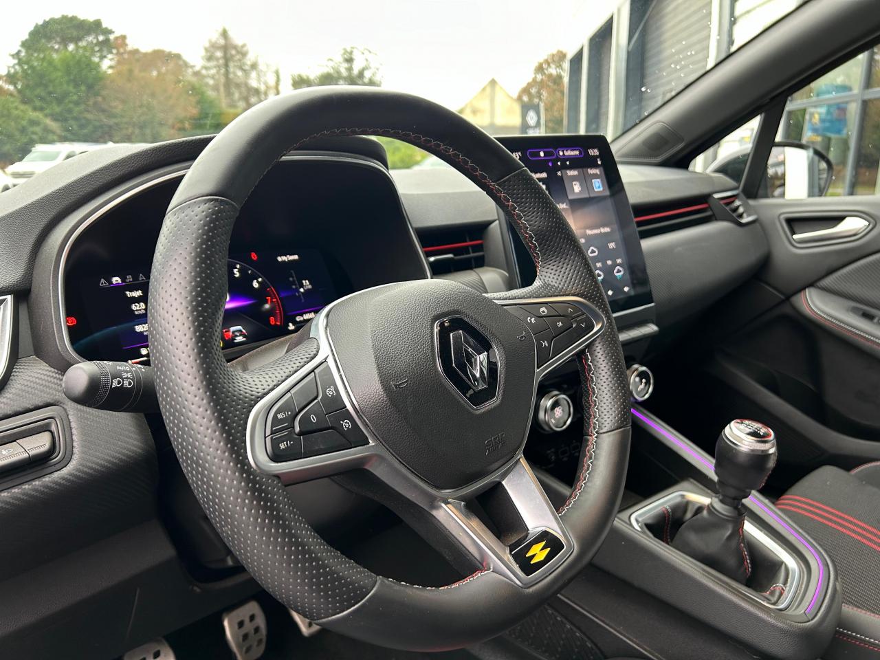 Accoudoir avant, coulissant - avec rangement ferméAccoudoir avant, coulissant - avec rangement fermé de 2,2 lAérateurs latéraux chrome satinéAide au démarrage en côteAirbags frontaux conducteur et passager adaptatifs (airbag passager déconnectable)Airbags frontaux et latéraux conducteur et passager avantAirbags rideaux de têtes aux places avant et arrièreAlerte de non bouclage de ceinture à toutes les places avec détection de présenceAlerte de perte de pression des pneusAlerte de sortie de voie avec volant haptiqueAlerte distance de sécuritéAlerte oubli des ceintures de sécurité aux 5 places avec détection des occupantsAllumage automatique des essuie-glacesAllumage automatique des projecteursAntenne aileron de requin noireAppel d'Urgence Renault: appel automatique en cas d'accident ou bouton SOS pour appel (112) en cas d'urgenceAppuis-têtes avant fin et 3 appuis-têtes arrière réglables en hauteurBadges chromés sur décors d’ailes, avec signatureBaguette de protection de portes peint en gris gun metalBandeau supérieur des portes avant en matériau mousséBanquette arrière rabattable 40/60Boîte à gants ferméeBouclier arrière spécifique avec diffuseur gris gun metalBouclier avant spécifique avec lame gris gun métalBouton d’appel d’urgence r-callCanule d’échappement chromée ovaleCarte Renault, accès et démarrage « mains-libres »Ceinture centrale arrière 3 points, avec prétensionneurCeintures de sécurité AV et latérales AR à prétensionneurs et limiteurs d'effortCeintures de sécurité avant réglables en hauteurCiel de toit noirClimatisation automatiqueCoiffe de planche de bord en noir, avec matériau mousséConsole centrale avant flottante, avec gainage en matériau softContrôle électronique de stabilité (ESC)Désactivation manuelle de l'airbag passagerDesign extérieur R.S. LineDesign intérieur R.S. LineEASY LINK 7” et navigationEclairage avant et arrière Full LED Pure Vision avec signature lumineuse en forme de « C »Eclairage d’ambiance : lumière personnalisable sur console centrale et accoudoir des portes avantEclairage intelligent (commutation automatique feux de croisement/feux de route)Eclairage intérieur avant et arrière avec 4 liseuses LEDFeux de jour à LED avec signature lumineuse C-ShapeFixation ISOFIX sur siège passager avantFixations i-Size pour le siège passager avantFixations Isofix et i-Size 2 sièges arrièreFrein de parking électrique avec fonction Auto-HoldFreinage actif d'urgence avec détection des piétons et cyclistesFreinage actif d’urgence, avec détection des voitures, motos, piétons, cyclistes (jour et nuit)Indicateur de changement de vitessesInserts en chrome satiné sur l’embase de levier de vitesseInserts en chrome satiné sur le volant et l’embase de levier de vitesseJantes alliage 17” MAGNY-COURS diamantées noiresJoncs chromés sur bandeau supérieur de calandreJoncs chromés sur protections inférieures de porteKit de réparation / regonflage de pneusLécheur de vitres latérales chromeLève vitres électriques avant et arrière impulsionnelsLève-vitres arrière électriques avec système anti-pincementLiseuses arrière à LEDMode EcoNavigation connectée avec cartographie EuropePack CityPack Full ScreenPack Sécurité StandardPédalier en aluminiumPieds de portes et poignées arrière intégrée Noir BrillantPlanche de bord et panneaux de porte avec bandeau décor aspect carbonePoignées de porte avant couleur carrosseriePoignées de portes couleur carrosseriePrises USB avantProgramme éco mode avec Indicateur de changement de vitesseProjecteurs avant Full Led Pure VisionProtections inférieures de porte avec signature CLIORéception radio numérique (DAB+ et traditionnels FM/AM)Régulateur et limiteur de vitesseRenault MULTI-SENSE, personnalisation des modes de conduites et ambiance intérieures (3 mode pré-définis: MY SENSE, ECO, SPORT)Rétroviseur intérieur électrochrome sans contourRétroviseurs extérieurs couleur carrosserieRétroviseurs extérieurs électriques rabattables et dégivrantsSellerie mixte R.S. Line cuir synthétique noir et tissu rayé noir / rouge, surpiqûres rougesSellerie similicuir tissu R.S. line avec surpiqûres rougesServices de navigation connectée - 3 ans inclusSièges avant confort (assise élargie et maintien latéral amélioré)Sièges avant réglables en hauteurSurpiqûres et accents rouges sur le levier de vitesses et les accoudoirsSystème de surveillance de pression des pneusSystème Isofix aux places latérales arrière et passager avantSystème multimédia Easylink avec radio DAB compatible Android Auto & Apple CarPlayTableau de bord avec écran numérique et personnalisable 7”Véhicule connecté 4G avec pack de données inclus pendant 3 ansVitres arrière surteintéesVitres avant électriques avec descente et remontée à impulsionVitres latérales et lunette arrière surteintéesVolant multifonctions réglable en hauteur et en profondeurVolant réglable en hauteur et en profondeurVolant sport en cuir perforé et logo renault sport